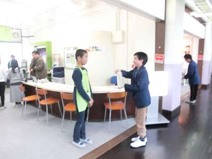 スチューデントシティでは,小学5年生ではなく,ひとりの大人として過ごします。親しい友だちが買い物に来ても,店員として接客しました。働くことの大変さとともに,やりがいや楽しさ,達成感も味わえた学習になりました。