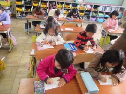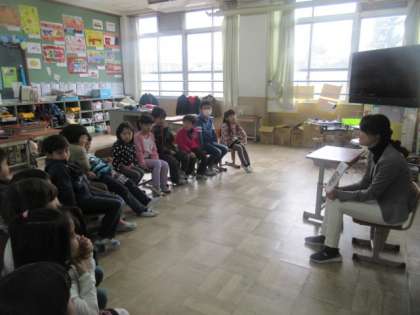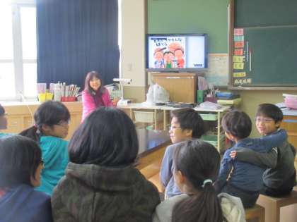 読み聞かせを聞いた後は,感想を交流し合いました。異学年の子どもたちで交流するので,低学年は高学年のお兄さんお姉さんの意見も聞くことができ,考えが深まったのではないでしょうか。先生が,絵本のテーマで話題を広げようと工夫しているので,本音の意見が聞かれ盛り上がっているところもみられました。