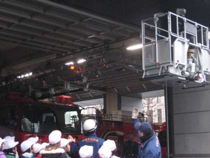 「一番上の,人が乗る‘かご’の所を見てみよう。」