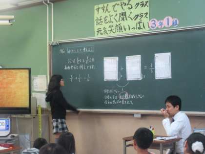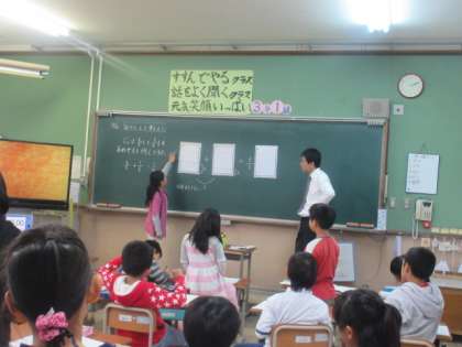 3年生の子どもたちなりに,なぜそうなるのかを言葉で一生懸命説明していました。ただ計算ができるのではなく,なぜそうなるのかまで考えられる子どもたちに育ってほしいと願い授業を行っています。
