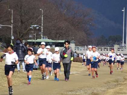 2周目になるとまだまだ元気な子,河川敷の向こう側で疲れて少し歩いている子,様々でしたが,みんな前へ前へ進んでいます。