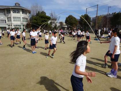 22日3時間目に,たてわりグループ対抗のなかよし大縄大会を行いました。今日に向けて休み時間に何度か練習を行ってきました。どのグループも気合が入っていました。5分間を2回跳び,合計数で競います。