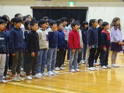 4年生は,英語が出てくる歌に挑戦しました。高い音程もきれいな歌声で歌うことができました。