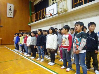 その後は,全学年で6年生の為に「雨のち晴レルヤ」を歌いました。みんなのお祝いの心が伝わってくる素敵な歌声でした。