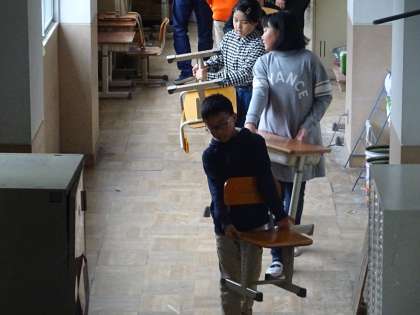 教室内の机の数も変わるので,机やいすの移動も行いました。きれいな机・いすを各教室に入れたり,古くなった机・いすを廃棄するために体育館横まで運んだり,大変な作業でしたが,何往復もして頑張ってくれました。