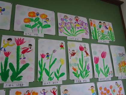 それぞれの学年で図画工作の時間に絵を描いていますが,少しずつ作品が完成してきました。教室には色とりどりの作品が貼られ,教室の雰囲気が少し明るくなったような気がします。