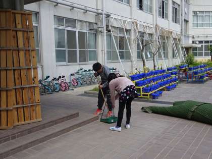 どの学年も清掃を頑張っています。職員室前の道の桜の花びらをきれいにはいたり,児童玄関前の砂をすのこをどけてきれいにはいたりみんな一生懸命です。