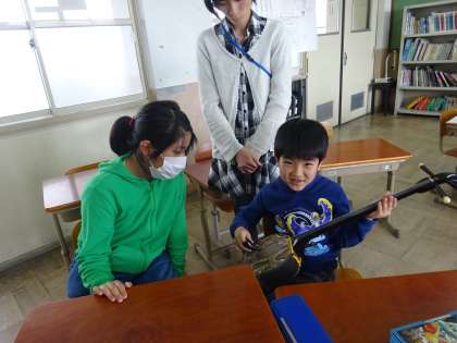 今年度より発足した音楽クラブ。沖縄音楽で使われている三線のひき方を学んでいました。初めて楽器を触る子どももいて,恐る恐る楽器に触っていましたが,よい音がなるととてもうれしそうでした。何か曲が演奏できるようになるといいですね。楽しみです。