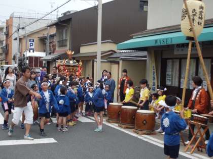 6日(土)に,御霊神社の子どもみこしが行われました。室町校の子ども達も多く参加し,元気におみこしを引っ張っていました。長い距離を引っ張って歩き,学校についたころには少し疲れた様子でしたが,休憩を取った後再び元気に出発していきました。はっぴ姿がかっこよかったです。