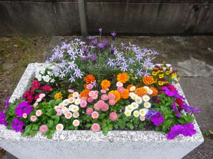 学校では,正門前のつつじの花がきれいに咲いています。掲示板前の花もとてもきれいに咲いています。明日元気な顔の子どもたちに会えるのを楽しみにしています。朝陸上も8時からあります。遅れないように来てください。