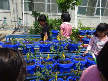 1人一鉢なので,自分で毎日水やりをして丁寧に世話していくことが必要です。きれいな花が咲いたり大きな実がなったりするのを今から楽しみにして,水やりを毎日,つづけてほしいです。
