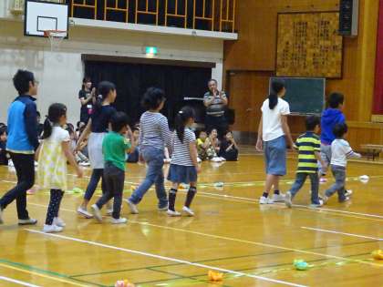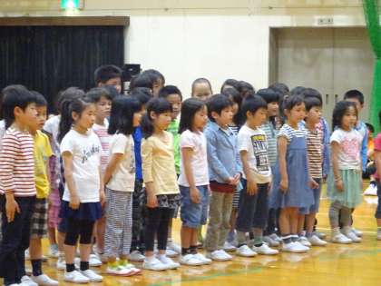 1年生が入場する時,6年生が1年生の手をつなぎ,やさしく誘導してくれました。始めの言葉の後,2年生がこれから行う1年生との交流学習について歌やことばで説明をしました。動作つきの楽しい歌でした。大空学級の子どもたちは,きもちのよい挨拶ができるように挨拶の歌を歌いました。全校みんなで楽しく歌うことができました。