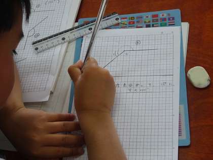 4年生は算数で「角」について学習しています。分度器を使うことがうれしいようで意欲的に取り組む姿が見られます。