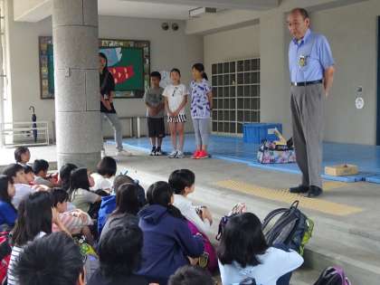 今日より6年生が伊勢に修学旅行に行きます。7時45分に集合し,出発の式を行いました。代表の子どもが修学旅行に向けての思いや決意を述べた後,校長先生のお話,担任の先生のお話を聞きました。
