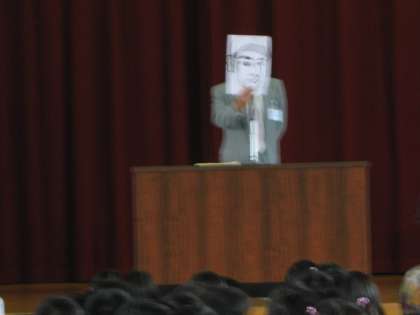 素晴らしい成績を残してきた室町小学校をもっともっと元気な学校にしていきましょう。(腹話術ができないのでこんな工夫をしてみました。)