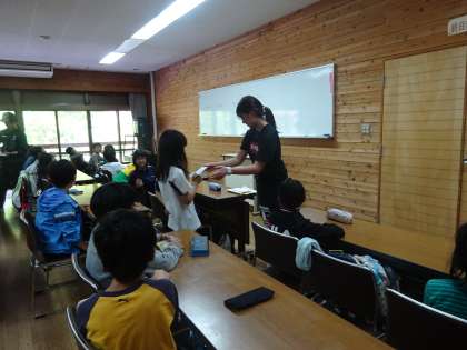 登山で汗をいっぱいかいたので早めに入浴を済ませ,その後,山の家での活動を振り返りました。活動を積み重ねる中で自分たちが普段,いかにおうちの人たちに色々なことをしてもらって生活しているのかに気づくことができたようです。いつも変わらず自分たちのことを考え見守ってくれている家族のありがたさに離れてみて気づいた子どももたくさんいました。