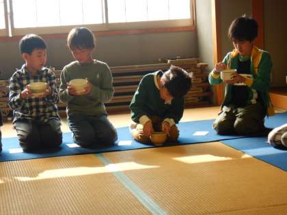 今日は、茶道の先生方に来ていただいて、実際に茶道を体験をしました。