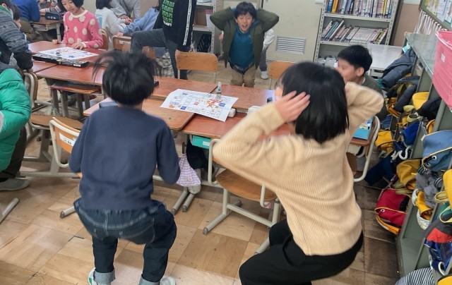 班のみんなで冬休みの出来事を楽しく話していました。
