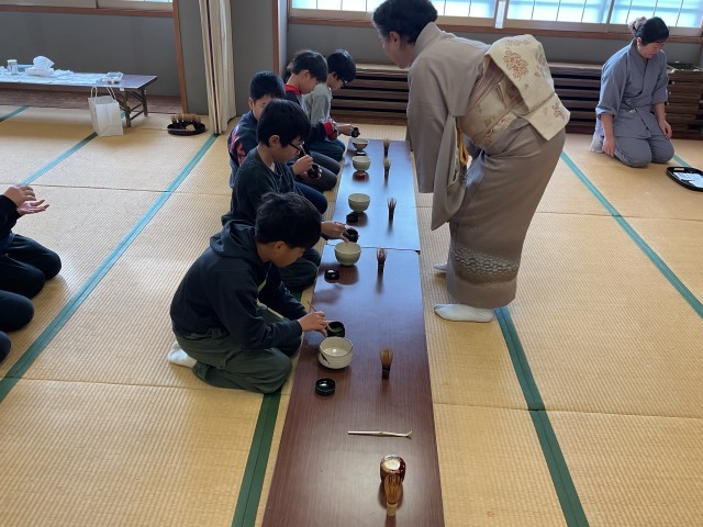 お茶をいただいた後は、帛紗さばきを教えていただきました。「難しい。」「できた!!」とつぶやきながら取り組んでいました。自分のことと友達の様子も気遣う様子が頼もしかったです。総合の発表に向けてまたやりたいことや、アイディアも浮かんできたようでした。