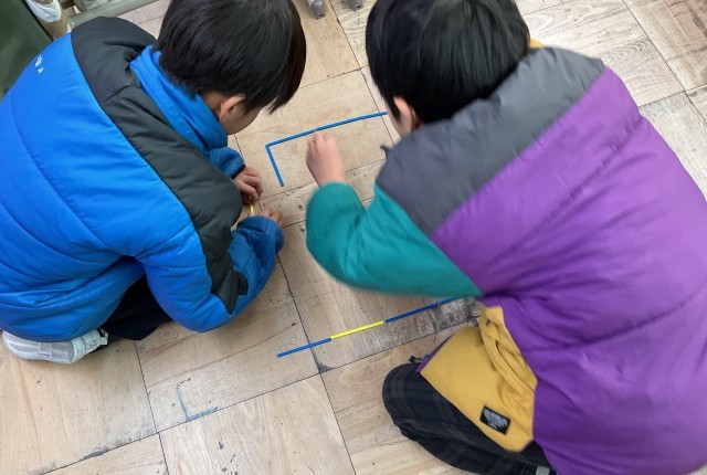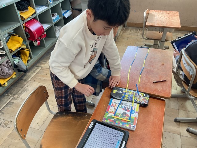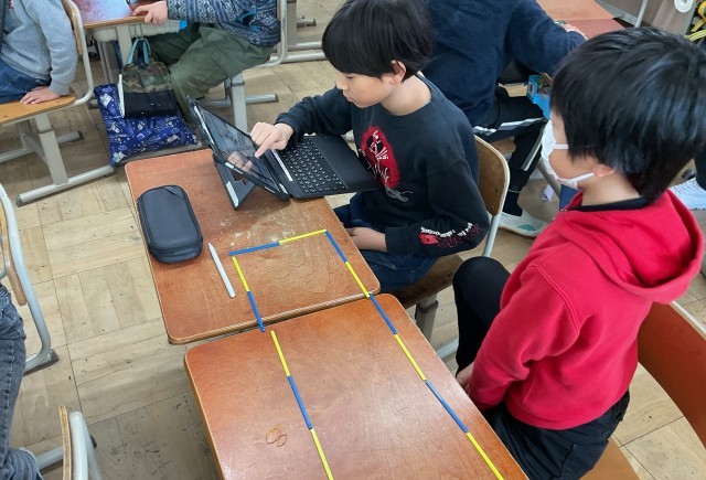 算数「変わり方」では、数え棒18本を使って長方形を作りました。