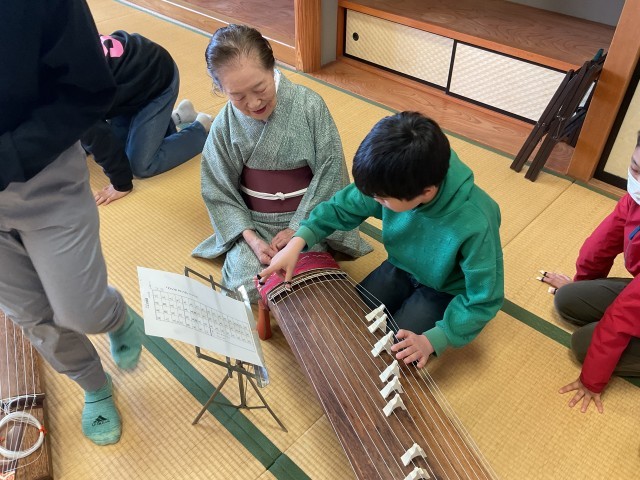 お箏の演奏を聴かせていただいたり、演奏体験をさせていただいたり、貴重な経験をさせていただきました。