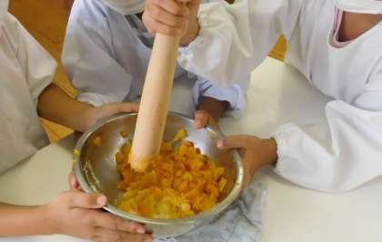 カボチャをレンジで温めてつぶし,カボチャ餡にして