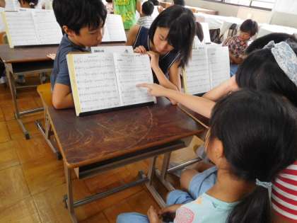 4年生と一緒に音楽の学習をしました。「気球にのってどこまでも」を