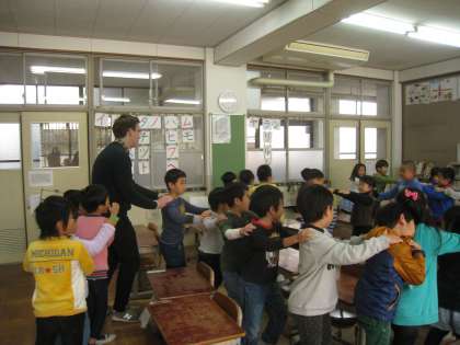 英語でじゃんけんをして,じゃんけん列車をしました。