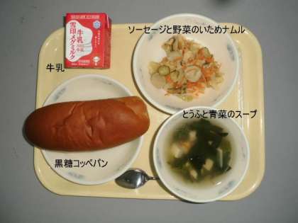 「ソーセージと野菜のいためナムル」に入ってる野菜は,キャベツとニンジンとジャガイモ,そしてキュウリです。キュウリは,これからおいしくなる夏野菜の一つです。