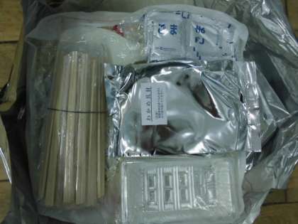 アルファー化米は,水やお湯を入れるとできるのですが,給食の「五目ごはん」は,乾燥ニンジンや干し椎茸,ささみを入れて炊いています。