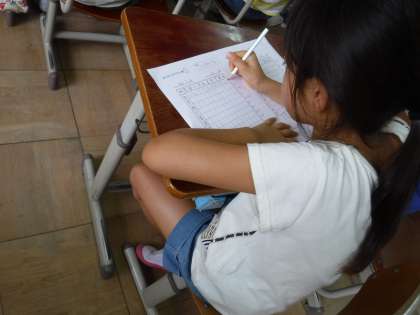 今日の学級チャレンジは,一年生で習った「くり上がり」「くり下がり」の百ます計算のプリントです。みんな集中して黙々と頑張っていました。