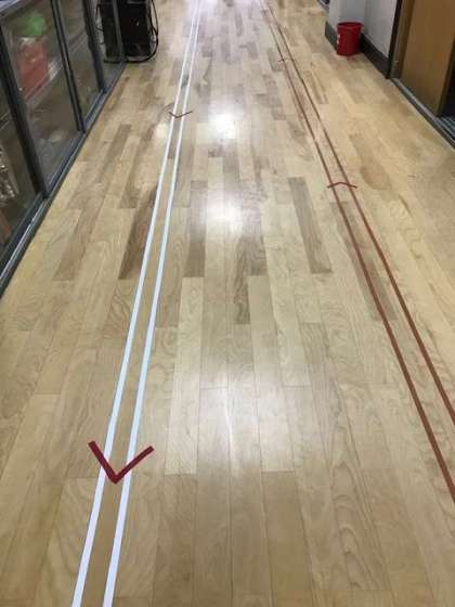 昨日,職員室前の廊下にラインを引きました。