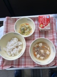 「はくさいの煮つけ」は,優しいお出しの味でした。今日は運動会なので,「早く食べないと」と,一生懸命食べていました。