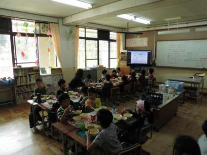 「筑前煮」には,秋においしいレンコンが入っています。秋のレンコンは,ほかの季節のものよりも柔らかく,味があっさりしています。食べている子どもたちに「かたくない?」とたずねると,「柔らかい」と言って食べていました。