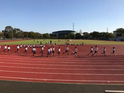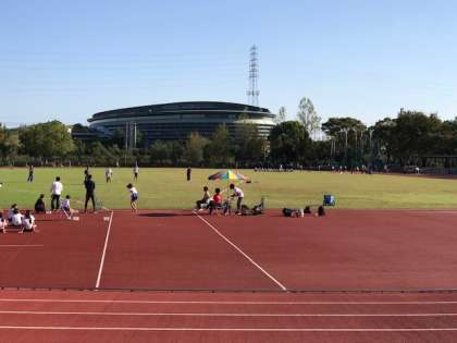 秋空の下,西京極陸上競技場で陸上記録会が行われました。