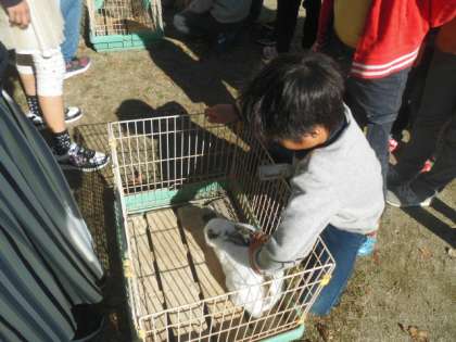 普段,小屋の外からしか見ることができないウサギに直接触れ合えるチャンスということでたくさんの子どもたちが集まりました。