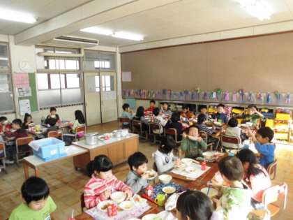 「肉みそ炒め」は,生姜やにんにくの香りがして,ごはんによく合いました。子どもたちもおいしそうに残さずにしっかりと食べていました。