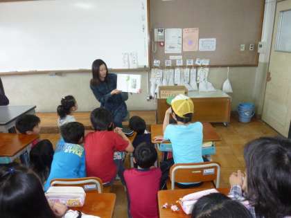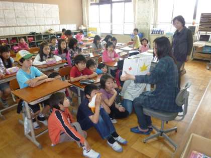 画像の4年生の教室では図書ボランティアの方が,「葉っぱのフレディ ーいのちの旅ー」の読み聞かせをしていました。4年生の子どもたちは,図書ボランティアの方の読み聞かせにしっかりと耳を傾けて,お話を聞いていました。
