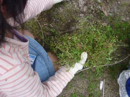 2年生の子どもたちがみんなで協力をして,畑の雑草をがんばって抜きました。雑草がきれいに抜き取られた畑は整地され,2年生の子どもたちの手で「サツマイモ」を植える予定になっています。おいしい「サツマイモ」が,たくさん収穫できるといいですね。