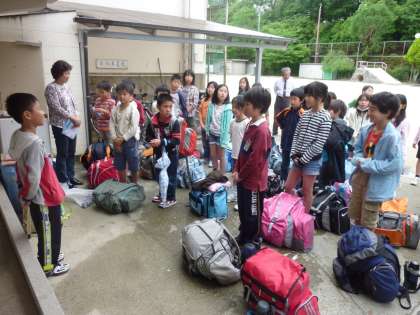 一昨日5月10日(火)から2泊3日で,三重県志摩市にある京都市野外教育センター「奥志摩みさきの家」に野外活動に出かけていた4年生の子どもたちが,今日12日(木)午後4時20分に学校に無事帰ってきました。