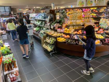 校区内にあるスーパーマーケットの秘密を探りに,見学に行きました。「いろいろな種類の商品があるよ。」「あの店員さんは何をしているのだろう。」など,子どもたちは様々におもいを広げていました。