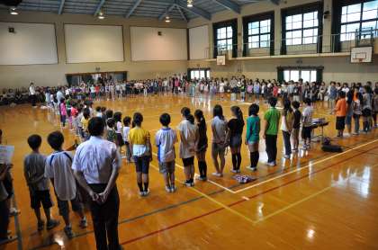今日6月12日(日)は,平成23年度の「日曜参観」を開催しています。2時間目は全校児童が体育館に集まり「人権集会」を行いました。