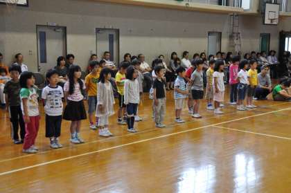 画像は上から順に,「全校の歌」,「1年生の発表」,「6年生の発表」です。