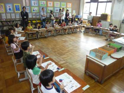 昨日6月12日(日)に,平成23年度の「日曜参観」を開催しました。日曜参観日の4時間目に1年生は,音楽の学習をしていました。