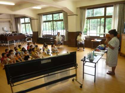 京都府歯科医師会及び京都府歯科衛生士会のご協力により,「歯磨き巡回指導」を昨日6月17日(金)5時間目にふれあいルームで実施しました。この歯磨き巡回指導は,子どもたちのむし歯予防の意識向上と正しい歯の磨き方を体得させるために,本校では1年生の子どもたちを対象に,学校歯科医の先生と歯科衛生士の先生にお越しいただいて毎年実施しています。