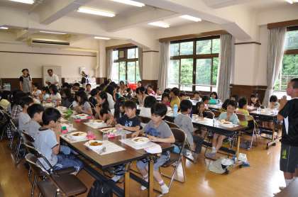 昨日6月19日(日)午前10時15分から,京極女性会主催の「折り紙・絵手紙とカレーライスの会」が,本校ふれあいルームと図書室を会場に開催されました。1年生から6年生の子どもたちを中心に,保護者のみなさん,地域のみなさんも含め,約100名の参加がありました。