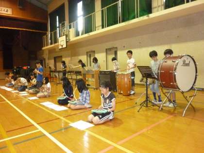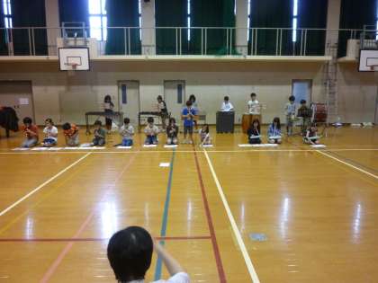 5年生は体育館で,本番さながらに「LOVE ME DO」の合奏の練習をしていました。使う楽器は「ピアノ」,「オルガン」,「木琴」,「コンガ」,「大太鼓」,「小太鼓」,「鍵盤ハーモニカ」,「リコーダー」で,小気味良い楽器の音色が体育館にこだましていました。