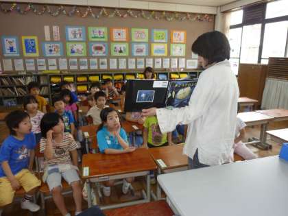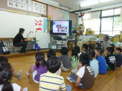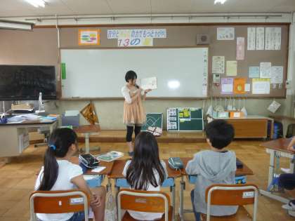毎週水曜日午前8時30分から8時45分の15分間,京極小学校の子どもたちに「読み聞かせ」を行っていただいている,京極小学校図書ボランティア「かしの木」の読み聞かせが,今日は1〜3年生の教室でありました。