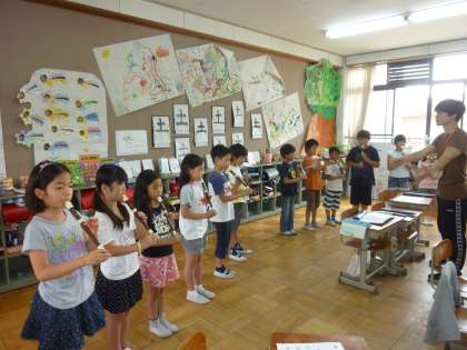 3年生は明後日の「児童音楽集会」で,「笛星人」のリコーダー演奏と「小さな世界」の歌を発表する予定です。