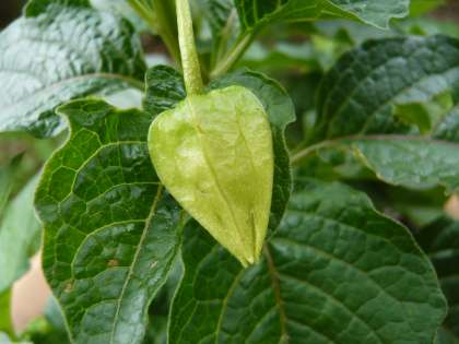 姿を現した「ほおずき」は2cm足らずで,オレンジ色に熟すまでにはもう少し時間がかかりそうです。